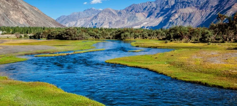 • Nubra Valley: A high-altitude desert, Nubra Valley is a landscape of stark contrasts. Sand dunes meet snow-capped mountains, creating a surreal and unforgettable vista. Ride a double-humped camel through the desert, visit the Diskit Monastery, and explore the charming villages that dot the valley.